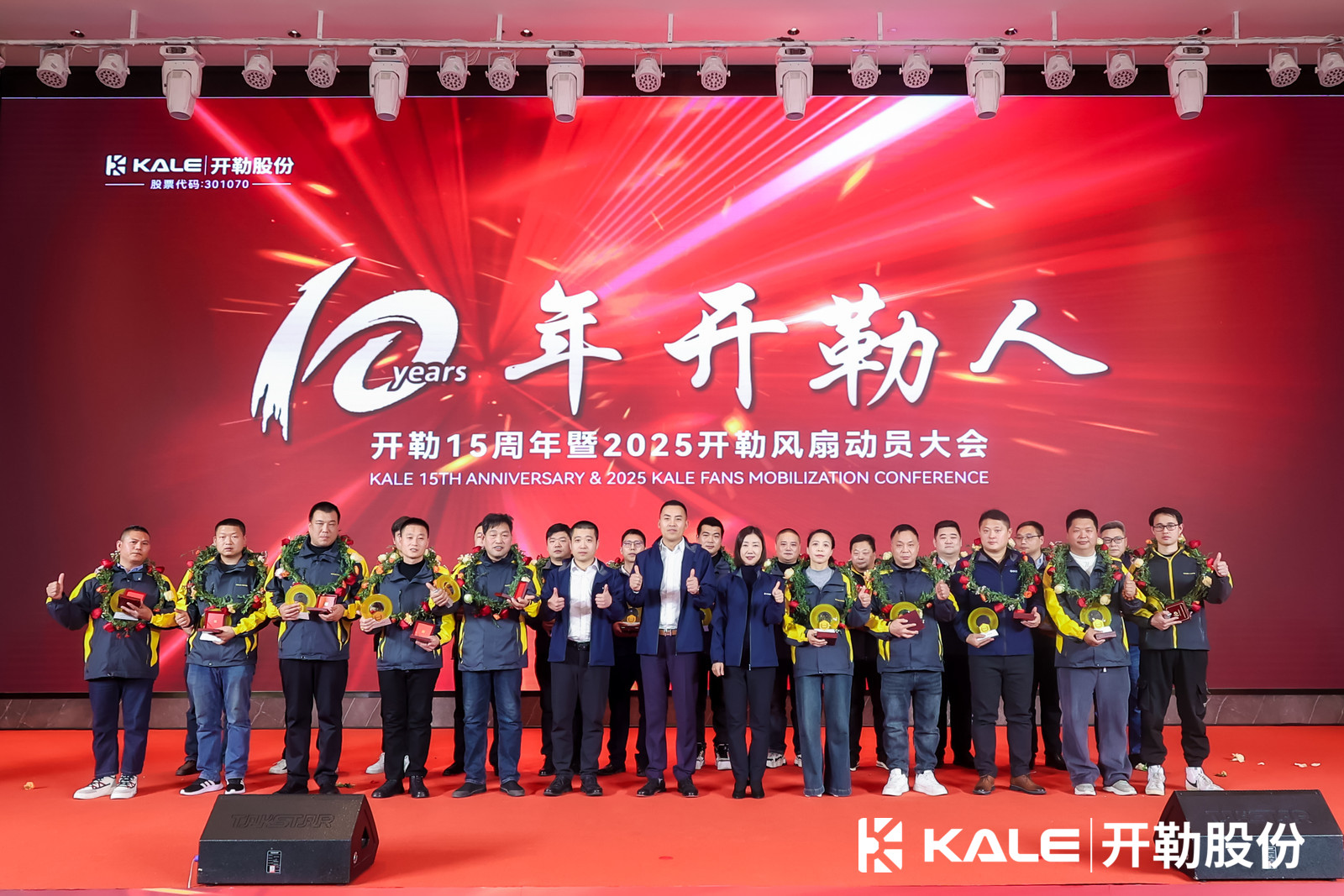 在开勒的发展过程中,有这样一群人,他们见证了企业的成长,也用自己的坚持和奋斗,书写了属于开勒人的故事。大会特别设置了“十年开勒人”表彰仪式,向22位在公司服务超过十年的员工致敬。他们当中,有销售一线的拓荒者,有深耕研发的技术骨干,也有保障生产的工厂老将。